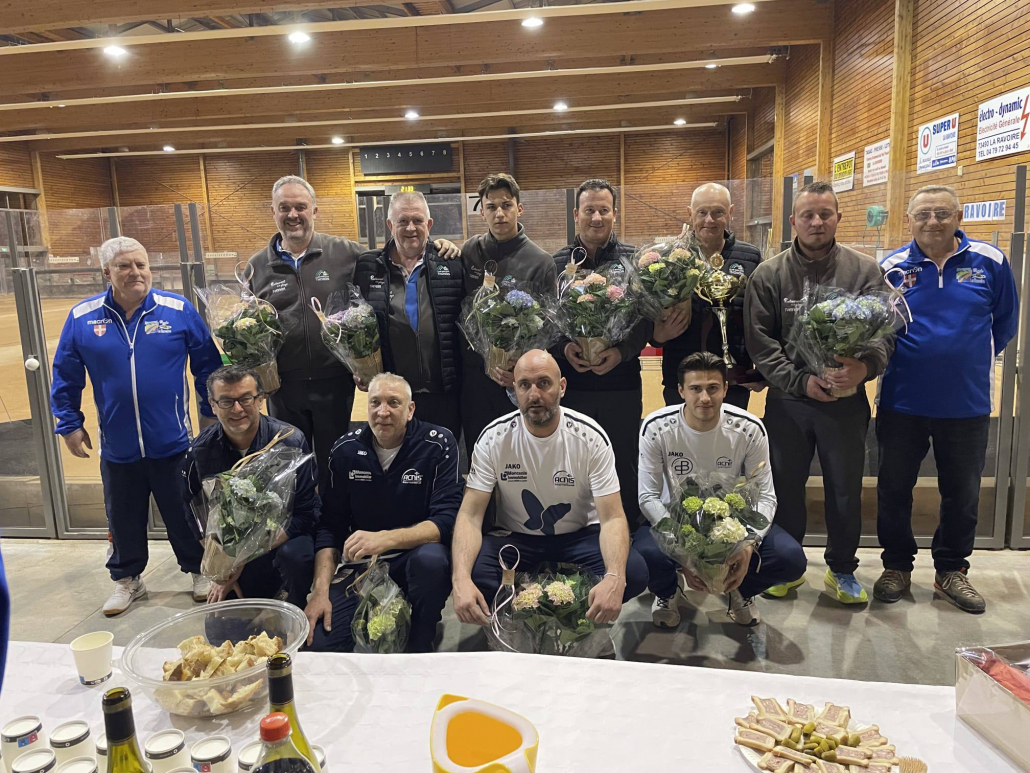 A La Ravoire (73) en M2 l’équipe Prémat de Thonon remporte le concours après avoir gagné ses 3 parties de poule et sa demi-finale. Elle bat en finale l’équipe Bermond (Curie Fontaine). Dans l’autre demi-finale de ce concours , l’équipe Lafiandra d’Annecy s’incline contre cette même équipe Bermond 13 à 5.