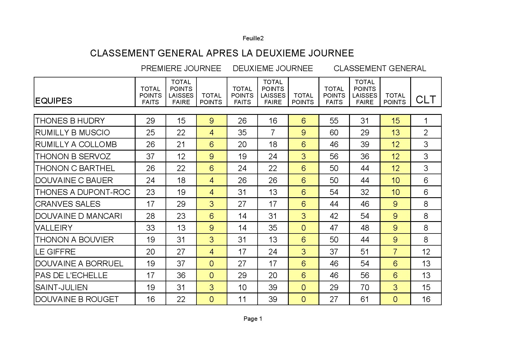 RESULTATS DE LA DEUXIEME JOURNEE DE LA LIGUE VETERAN M4/1M3 ET CLASSEMENT GENERAL
