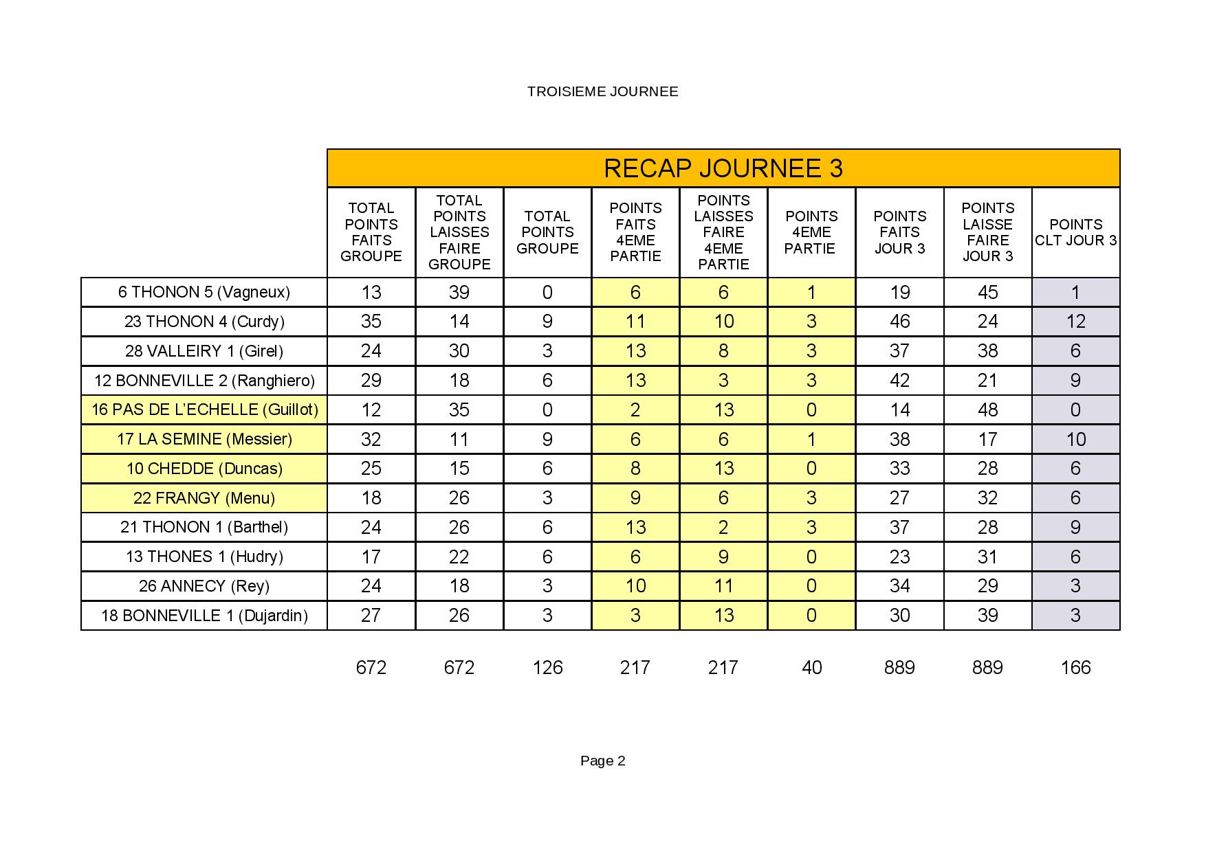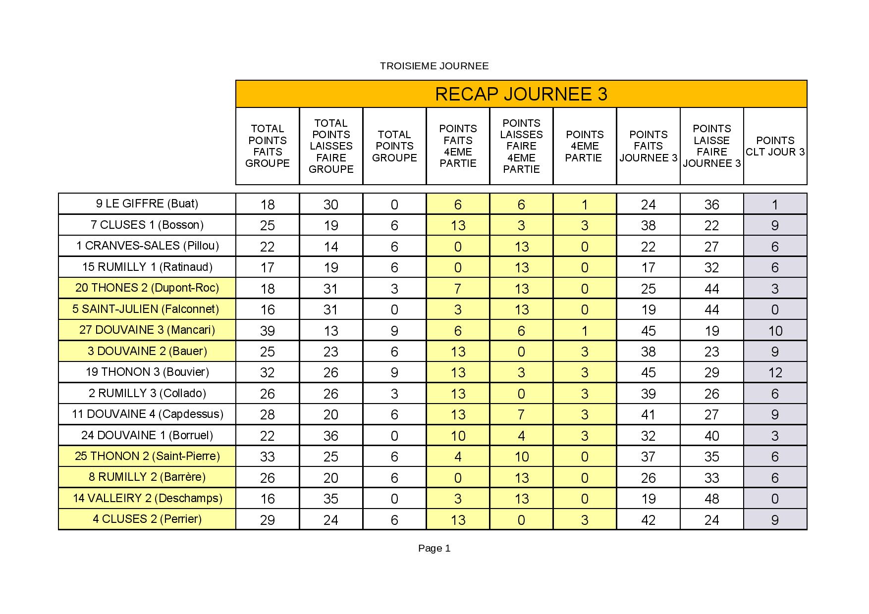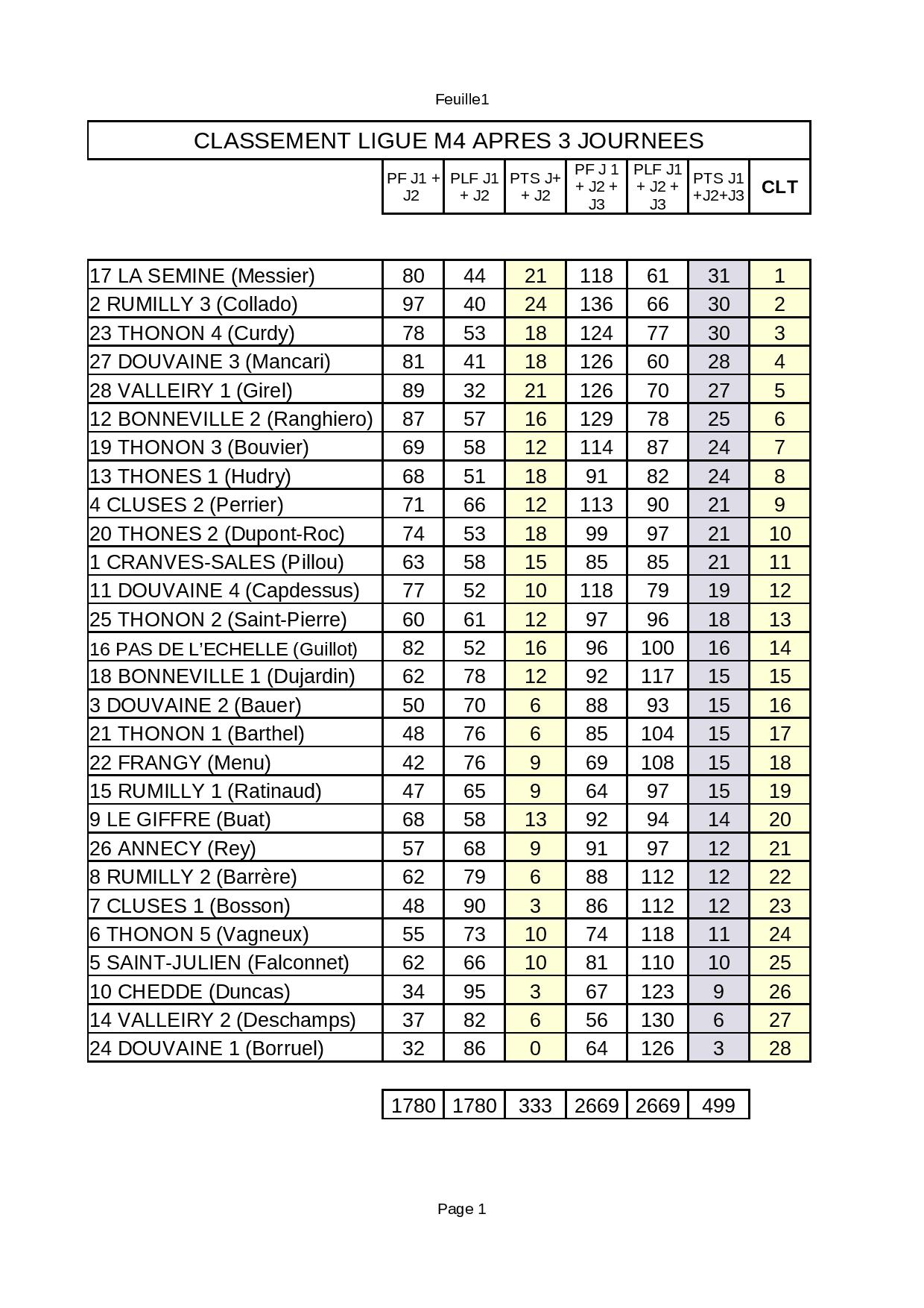 CLASSEMENT DE LA LIGUE M4 APRES LA TROISIEME JOURNEE DISPUTEE A CLUSES ET CHEDDE