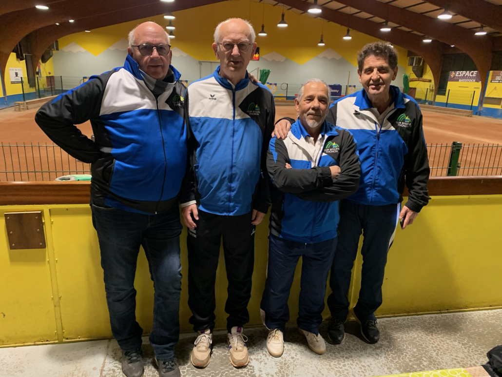 C’est l’équipe de Thonon composée de Luis Garcia , Georges Mulas , Bernard Bouvier et Eric Jolivet qui s’est qualifiée avec trois parties gagnées et 35 points faits. Elle devance d’un tout petit point (34) l’équipe de Chedde emmenée par Jacky Toni.