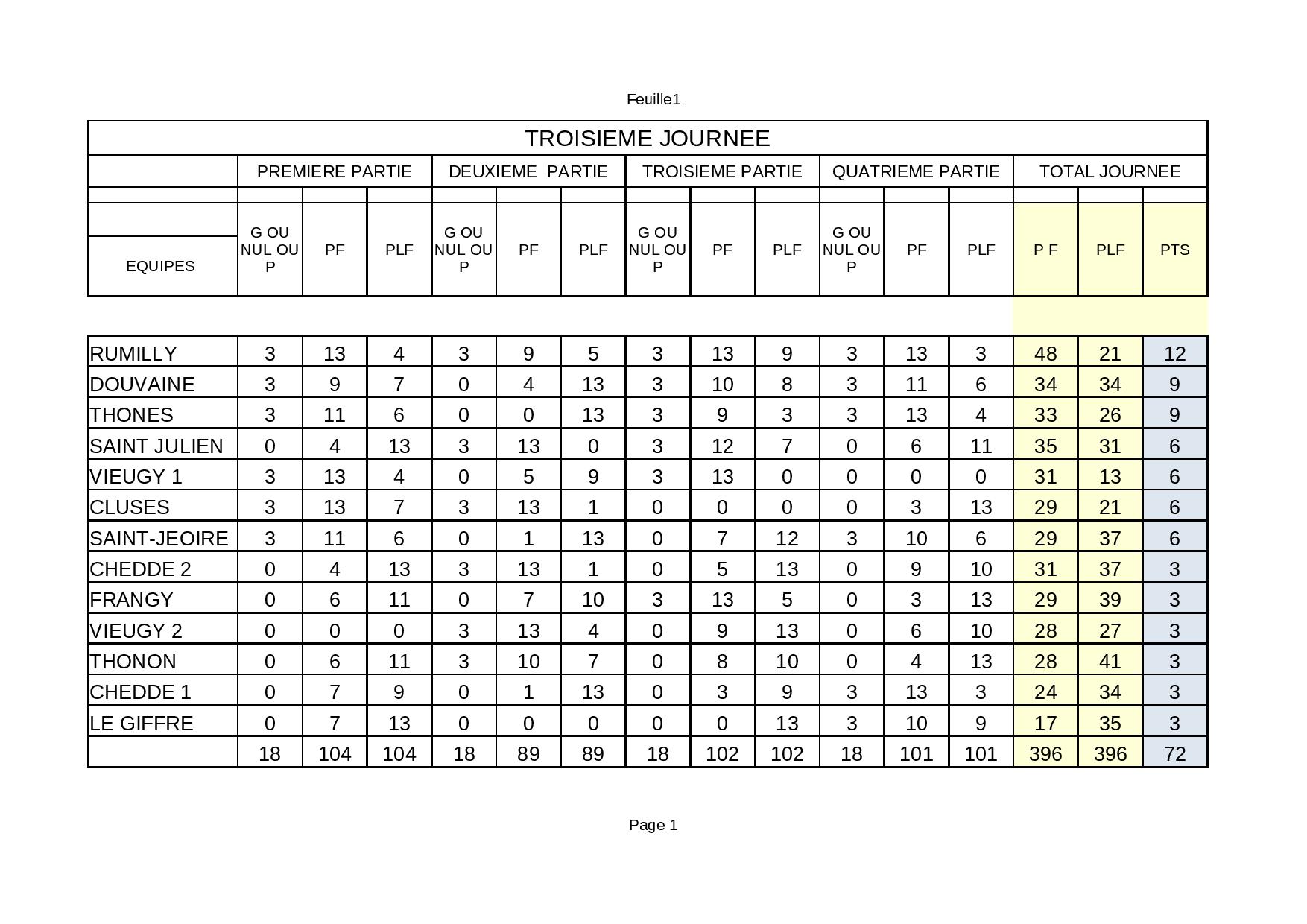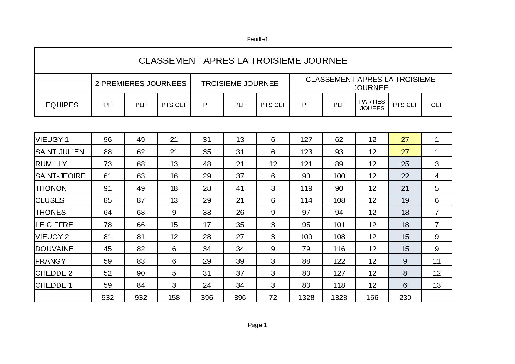 TROISIEME JOURNEE DE LA LIGUE M3 DISPUTEE A CLUSES ET CLASSEMENT APRES CETTE JOURNEE (MI-PARCOURS)