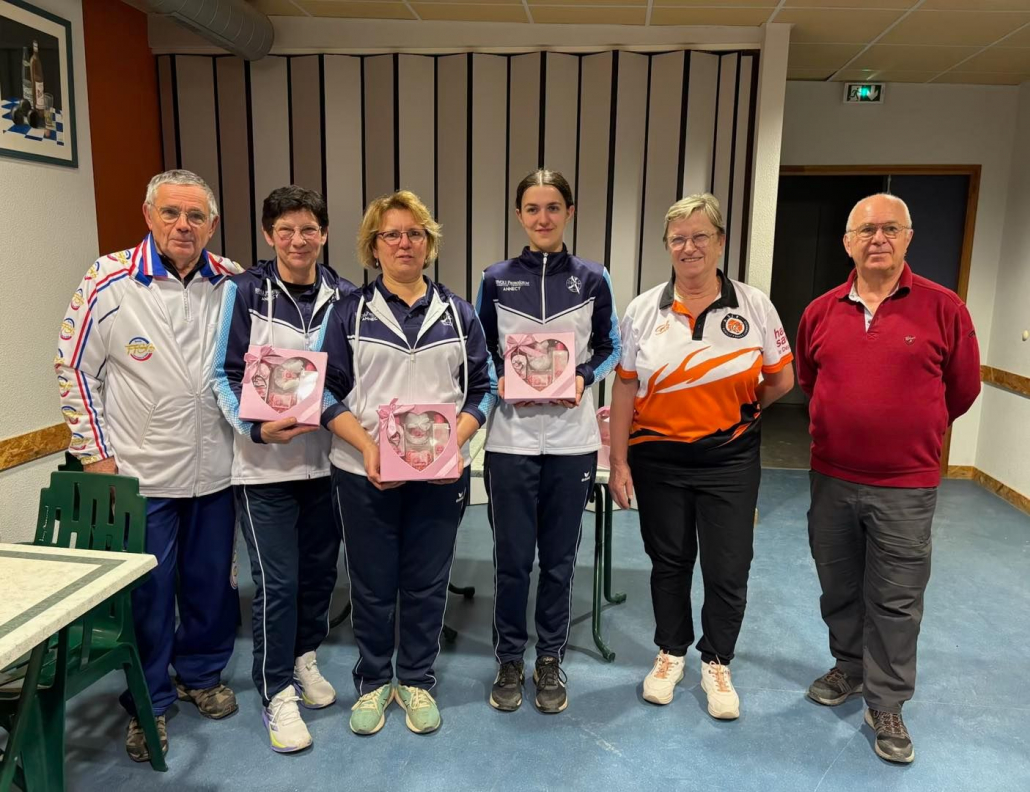 En F2 à Rumilly , l’équipe de Nelly Deloche (Vieugy) s’incline en finale contre l’équipe Niogret (Faubourg Bourg en Bresse) et à Moirans (38) , l’équipe de Valérie Peyron-Gérard (Thonon) perd en demi-finale du concours.
