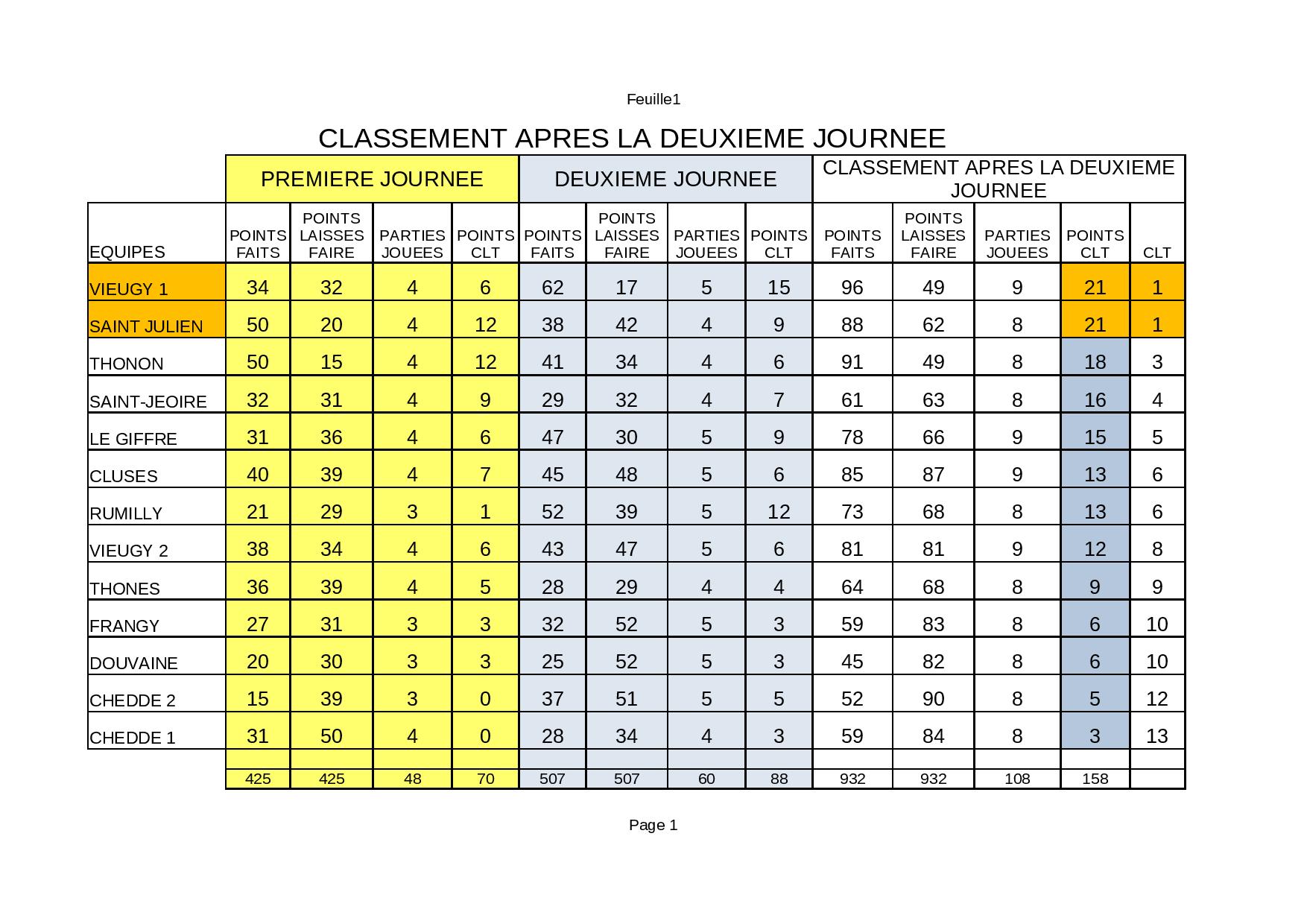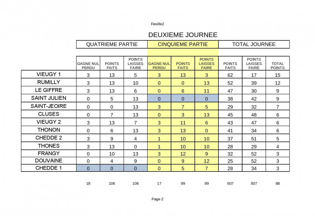 RESULTATS DE LA DEUXIEME JOURNEE DE LA LIGUE M3 ET CLASSEMENT GENERAL