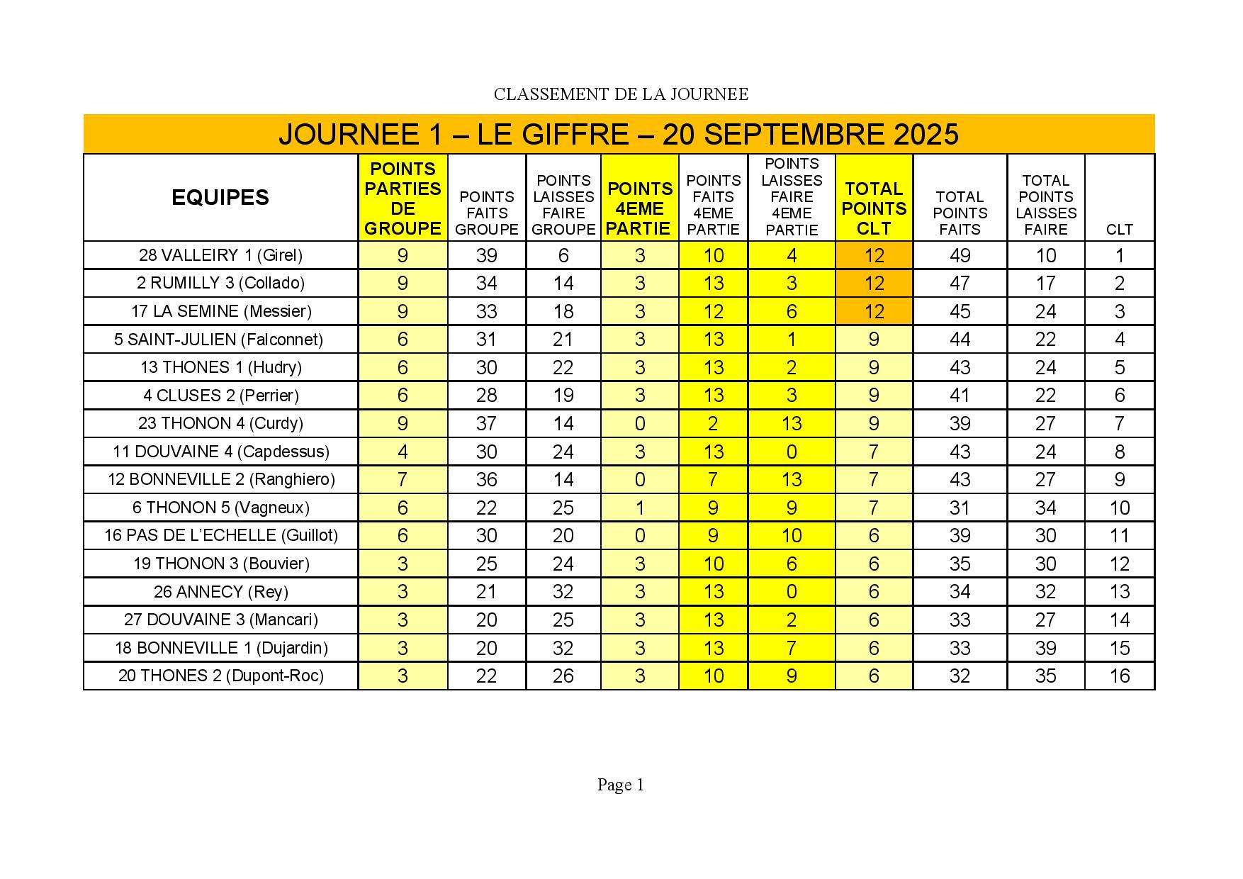 LIGUE M3 PREMIERE JOURNEE ET CLASSEMENT